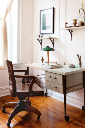 Pana imi pun putin la punct spatiul oficial de munca de acasa, incluzand aici si momentele in care scriu pe blog sau editez fotografii, am mai cautat cateva idei inspirationale de birouri. Stiu ca am nevoie de: lumina naturala care sa vina dintr-o parte, preferabil stanga, un birou simplu, iar nebunia adevarata va veni la accesorii 🙂 Am strans deja cutii si cutiute de depozitare cu accente vintage, accesorii de birou feminine si cate si mai cate! Sper sa ma mobilizez sa cumpar biroul cat de curand…
