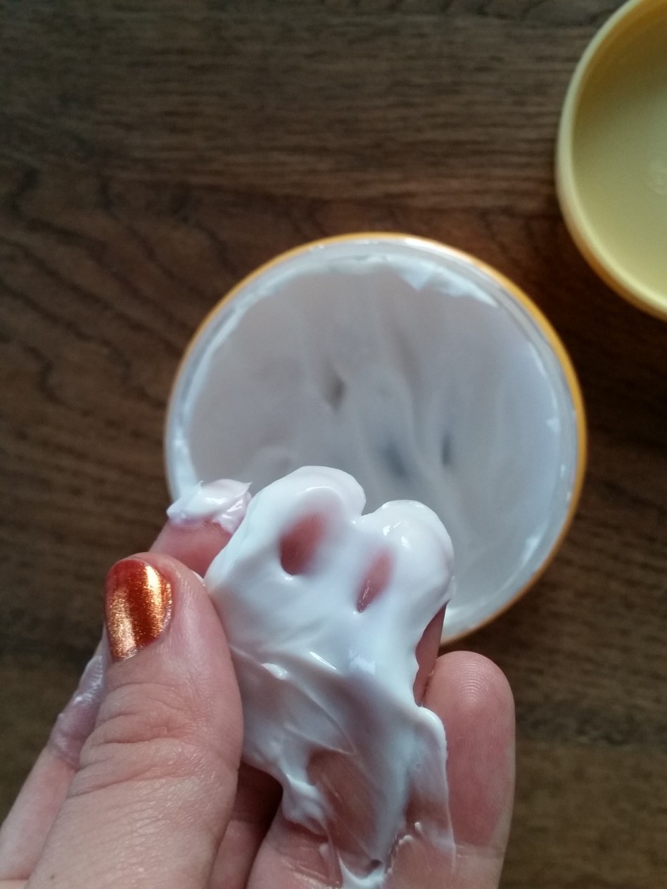 Textura este destul de light din punctul meu de vedere, am terminat borcanasul destul de repede, cred ca vreo 2, 3 saptamani – dar nu am folosit doar aceasta crema, ci si unturile mele de la Reverto, fara de care, cu crema Petit Marseillais era ca si cum nu as fi folosit nimic.